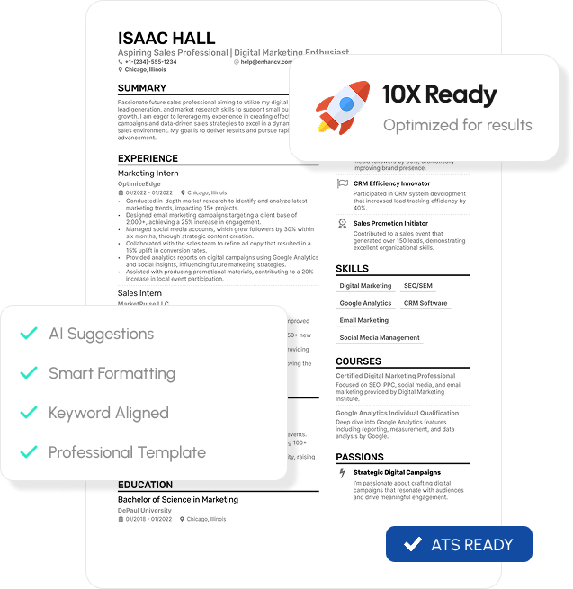 Get a polished, job-ready resume in one click, ready to be shared or submitted.